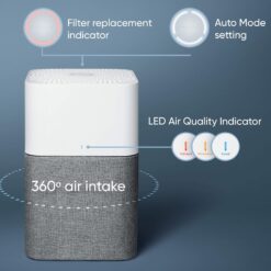 - AUTO ADJUSTS SO YOU CAN REST EASY: One touch auto mode uses a particle sensor to monitor pollutant levels and adjusts fan to ensure optimal air quality; LED indicator displays air quality status as excellent (blue), moderate (orange) or polluted (red)