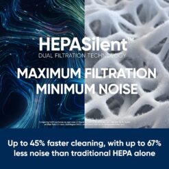 - CLEAN AIR IN MINUTES: Blueair’s HEPASilent dual filtration delivers up to 45% faster cleaning & up to 67% less noise than traditional HEPA filtration alone; Quickly cleans 212sqft medium room in about 12.5min or up to 1,017sqft XL space in 60min, on high