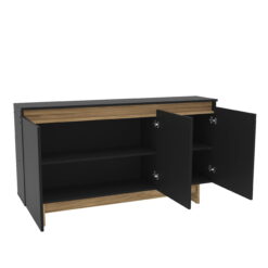 The Bauhaus Montresor Modern Black Sideboard with a solid and Contemporary design is the Sideboard you must have in your home. When storage is needed and you want to complement your living room with a contemporary style, this fabulous sideboard buffet is your right choice. Set it on a wall across from the front door to welcome guests, use it to stage leaning mirrors and potted greens for a look of earthy elegance, then add in a touch of personal appeal with a few framed family photos. Subtle enough to beautifully blend in, it features two doors with four large interior shelves perfect for storing dishes, books, magazines, or anything you would like to have near your front door. Assembly is required. Dimensions are 29.75″ H x 53.38″ W x 11.44″ D.