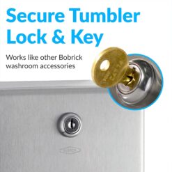 - SEAMLESS DESIGN – Door has flat face with protruding tumbler lock for secure and easy access. Product is keyed like other Bobrick accessories. Also, equipped with Theft-resistant, heavy-duty spindles.