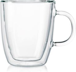 Bodum 10oz Bistro Double Wall Insulated Mug, High-Heat Borosilicate Glass, Set of 6, Clear