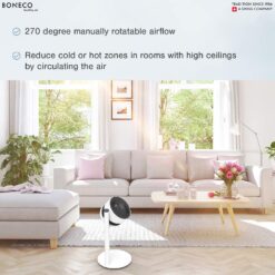 The BONECO F120 is the perfect choice for bedrooms or mid-sized rooms. It features a stylish and innovative single arm design to help achieve superior airflow. The head of the fan can be rotated 270 degrees which makes it extremely versatile–point it at yourself for direct cooling or reflect it off your ceiling or wall to create the signature air shower feeling. The F120 has three speed levels which are controlled by a rotary knob.