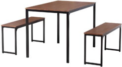 BONZY HOME Wood Dining Table Set, the tabletop is made of MDF board, and the table legs are made of heavy powder-coated thick steel plate for maximum stability and durability. All parts are coated with high-quality waterproof varnish, which is abrasion-resistant, scratch-resistant, and easy to clean. The set is equipped with a spacious table and 2 benches. A simple yet stylish design will add a modern touch to your home.
