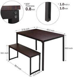 BONZY HOME 3 Piece Dining Table Set, the tabletop is made of MDF board, and the table legs are made of heavy powder-coated thick steel plate for maximum stability and durability. All parts are coated with high-quality waterproof varnish, which is abrasion-resistant, scratch-resistant, and easy to clean. The set is equipped with a spacious table and 2 benches. Simple yet stylish design will add a modern touch to your home.