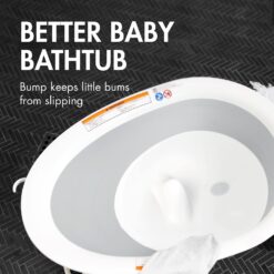 - BETTER BABY BATHTUB: Updated features include a bump to keep little bums from slipping and easy-fold legs
