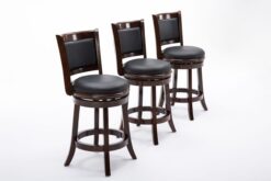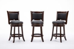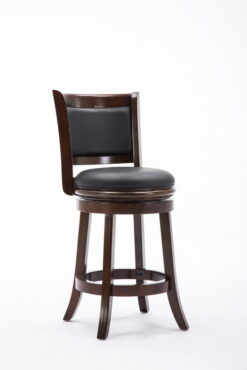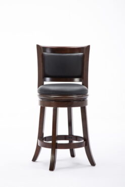 Safety, durability, and design are all wrapped up in one package with the Boraam Augusta Swivel Counter or Bar Stool. No matter how long your meal lasts, the stool’s round swivel seat, footrest, and contoured back ensure you’ll be eating in comfort. A 360-degree ball-bearing swivel plate promises durability. Thanks to the solid hardwood construction and stability stretchers on the stool’s base (which also double as a footrest), you’ll get long-lasting use out of this piece. Finally, faux leather upholstery covers fire-retardant high-density foam in the seat and the back. The stool’s contemporary good looks are available in your choice of three different finish options, so it’s sure to fit into any decorating scheme. Perfect for your kitchen or dining room.