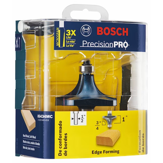 Bosch Carbide-Tipped Router Bits deliver precision and durability. They feature premium-quality micrograin carbide tips that are engineered with a special heat-treating process for an extra-fine finish. The tips provide maximum sharpness and edge retention. The fully hardened and tempered steel shanks provide ultimate durability. These bits retain painstaking accuracy across hundreds of profiles for mortising, edge forming, trimming, surface forming, and cabinetry/joinery in wood, plastic and laminate.