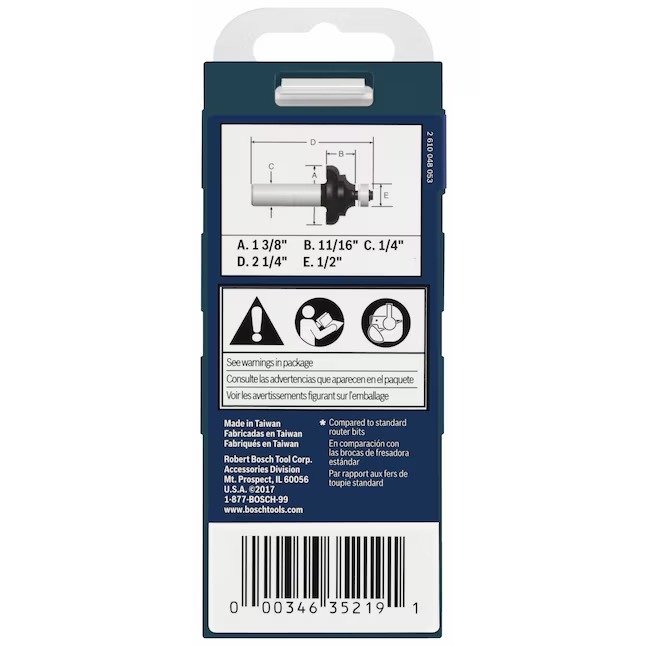 Bosch Carbide-Tipped Router Bits deliver precision and durability. They feature premium-quality micrograin carbide tips that are engineered with a special heat-treating process for an extra-fine finish. The tips provide maximum sharpness and edge retention. The fully hardened and tempered steel shanks provide ultimate durability. These bits retain painstaking accuracy across hundreds of profiles for mortising, edge forming, trimming, surface forming, and cabinetry/joinery in wood, plastic and laminate.