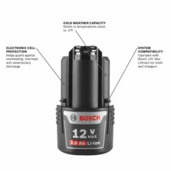 - System compatibility – operates with Bosch 12V Max cordless power tools and chargers