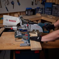 The CM8S 8-1/2 In. single bevel sliding compound miter saw features a Bosch exclusive design delivering a well-balanced saw with a top carry handle at the center of gravity and weighs only 37 pounds. These features easily provide one-handed portability on and off the job. Accessible controls make it easy to change bevel settings without reaching behind the saw. The integrated expanding work piece supports, large easy to read miter and bevel scales, and detent system provides quick and accurate cuts. The CM8S also has the same crosscut capacity (12-1/4 In.) as a 10 In. miter saw, at 30% lighter weight.