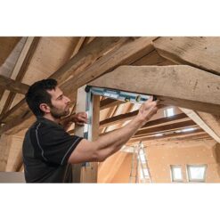 The Bosch GAM 270 MFL Digital Angle Finder and Inclinometer is five tools in one: a digital angle finder, an inclinometer, a miter cut calculator, a protractor and a digital level. The angle finder provides accurate angle targets, while the inclinometer offers precise measurements in degrees. The tool is also equipped with an integrated laser, allowing the user to transfer inclination measurements up to 100 Ft. The tool has two easy-to-read illuminated, flip displays, one for the inclinometer and one for the angle finder. Users are able to easily reuse and transfer save measurements with the hold function. The cut calculator provides easy saw angle adjustments and a compound miter calculator. Users can find the miter angle using the tool’s legs, which have an angle range of 0-270°. The compound miter calculator is used to measure joint angles that are not perpendicular. The tool has clearly labeled buttons for straightforward calculations. The angle finder has robust housing with IP 54 protection.