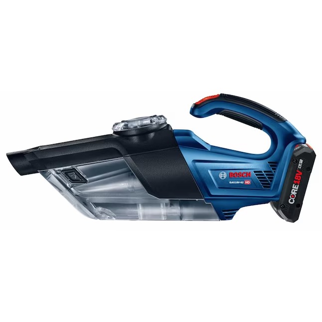 - Innovative cordless handheld vacuum design – provides easier, long-running cleanup with two-stage rotational airflow technology and the durable Bosch 18 V Lithium-ion power platform