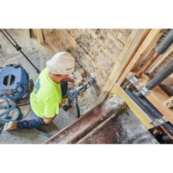This Bosch D-handle Bulldog™ hammer delivering superior performance and an outstanding impact-to-weight ratio. The GBH18V-28DCN 18V Brushless 1-1/8 In. SDS-plus® Bulldog™ Rotary Hammer delivers 2.6 Ft.-Lbs. of impact energy, based on the industry standard of measurement agreed upon by the European Power Tool Association (EPTA). It weighs only 6.7 Lbs. (tool only, not including battery). The hammer’s brushless motor maximizes battery runtime for extended performance. The tool features a jobsite-proven D-handle design with soft-grip and is ideal for overhead, horizontal and downward drilling applications. The GBH18V-28DC is compatible with an optional GDE28D cordless dust-extraction unit (sold separately), delivering a self-contained dust solution for max mobility. It has KickBack Control, an anti-vibration system featuring a built-in counter balancer and a variable-speed trigger for accurate bit starting. It also has a HammerHook to hang the tool on a well-supported structure and robust housing for enhanced durability. This hammer features connectivity (module sold separately), providing a link to the free Bosch Toolbox app on a connected device to customize settings.