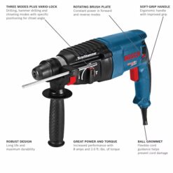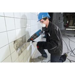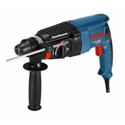 The Bosch GBH2-26 1 In. SDS-plus® Bulldog™ Xtreme Rotary Hammer is a durable and powerful 8.0 Amp rotary hammer. Another of the notable Bosch Bulldog™ hammers, this powerful and versatile tool combines user comfort with versatile drilling and hammering functions. Ideal for masonry pros or general contractors, this tool weighs only 6.4 Lbs., but it has an upgraded 8.0 Amp motor that provides 2.0 Ft.-Lbs. of impact energy and 0-5,100 BPM. It has a multifunction mode selector for drilling versatility – drilling only, hammer drilling and chiseling. With a rotating brush plate for longer brush life, this hammer provides a variable-speed reversing trigger for accurate bit starting. The SDS-plus® system provides for tool-free bit changes with automatic bit locking. The tool has a Vario-Lock positioning system that allows the user to rotate a chisel into the optimal chiseling angle. An ergonomic pistol-grip handle provides comfort in hard-to-reach places or all-day tasks.