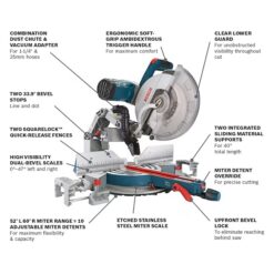 - The Bosch GCM12SD is a 12 Inch Dual-Bevel Glide miter saw that features a smooth cutting motion, accurate performance and a space-saving design of the Bosch-exclusive Axial-Glide system