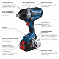 Bosch GDS18V-770CB14 8-Amp 18-volt Variable Brushless 3/4-in square Drive Cordless Impact Wrench (Battery and Charger Included)
