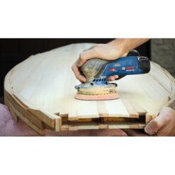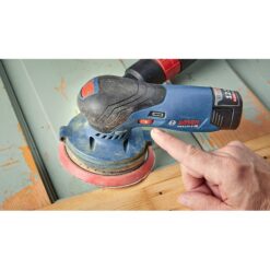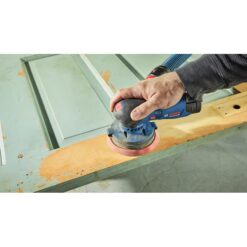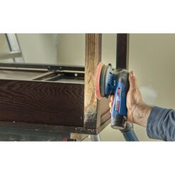 This 12V Max random orbit sander is designed to tackle hard-to-reach work areas with power and control. It features a well-balanced ergonomic palm grip, which allows your hand to be closest to the work material to avoid tilting and pressing down, for best results. The easy-to-reach on/off switch offers intuitive operation. The Bosch GEX12V-5 Brushless 5 In. Random Orbit Sander has a powerful 12V Max brushless motor, and it is engineered for professional applications. The speed selector delivers best results in different materials and applications. The sander has a 5 In. 8-hole sanding pad, which provides optimal dust collection when the sander is attached to a vacuum or a dust bag. The dust pad is ideal for both flat and concave/convex surfaces. The included dust bag allows mobile dust collection, while the tool has an interface for vacuum hose attachment. It also has soft-start technology, constant speed and a hook-and-loop backing pad. The sander has a compact shape with close-to-the-workpiece design for control in hard-to-reach areas.