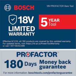 - Bosch 18V cordless power tools are covered by a five year limited warranty; For more information, visit manufacturer’s website