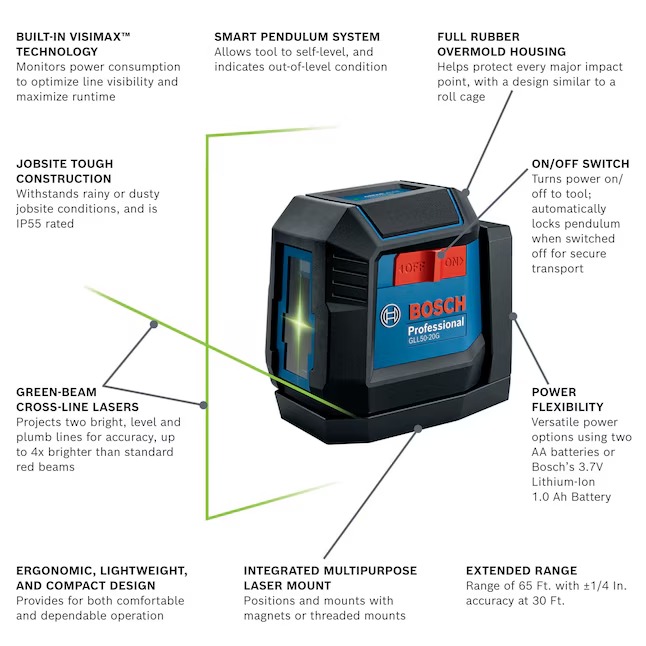 Bosch GLL50-20G 60-ft Green Self-Leveling Cross-line Laser Level