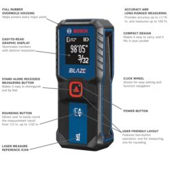 Bosch GLM100-23 BLAZE 100-ft Indoor Red Laser Distance Measurer with Backlit Display