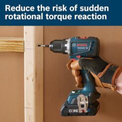 The Bosch GSR18V-800CN showcases superior user control and professional durability in a powerful drill/driver. Featuring an efficient and powerful brushless motor, the drill delivers an impressive 565 In.-Lbs. of max torque for heightened performance. The tool is fitted with KickBack Control, which reduces the risk of sudden rotational torque reaction in bind-up scenarios. A bright, LED work light illuminates dimly lit spaces for increased visibility on the job, and the switchable precision clutch feature ensures greater control when switched on by stopping the tool when clutch slippage is detected. The compact and ergonomic design provides for improved handling and greater comfort. Two speed settings offer options for both high speed (0-2,100 rpm) and high torque (0-630 rpm), while the 20+1 clutch settings help to tailor the tool to a range of applications. And with an all-metal chuck, the drill/driver was made for optimal durability.