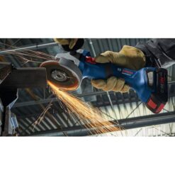 The Bosch GWS18V-8 is an ergonomic angle grinder that combines portability, performance and best user comfort. Its brushless motor provides equivalent 8.0 amps of power and greater efficiency that maximizes runtime and productivity. This 4-1/2 In. 18V grinder has restart protection to help prevent accidental start-up when switching batteries and soft-start technology to reduce startup torque and ease into cuts, and overload protection to reduce the risk of the motor overloading or overheating. It is designed with spiral bevel gears that provide smooth transmission of power to grinding applications. It also features an adjustable tool-free guard and an updated gearhead mounting collar, which is now compatible with all Bosch metal and concrete guards. This tool features a two-position side handle, slim soft-grip design and spindle lock.
