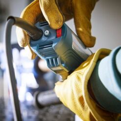 Compact yet powerful, the Bosch GWX14-50PBD 5 In. X-LOCK™ angle grinder combines high performance and comfort for grinding and cutting applications. The powerful 13-amp motor delivers 11,500 rpm for maximum performance and productivity. Complete with X-LOCK™ mount to make wheel changes up to five times faster than conventional interfaces. A narrow, lightweight design provides an outstanding power-to-weight ratio and better ergonomics. The larger paddle switch allows for various handling positions and greater control, while the brake system helps to quickly stop the wheel when the paddle is released. Fitted with an anti-vibration side handle for increased user comfort in longer applications. Engineered with KickBack Control, soft start, overload and restart protection and drop control to help turn off the grinder if accidentally dropped. Compatible with existing Bosch grinding guards and shrouds for use in a range of metal and concrete applications.