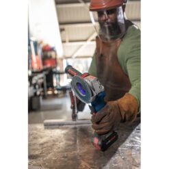 The Bosch GWX18V-50PCN 18V EC Brushless Connected-Ready 4-1/2 In. – 5 In. Angle Grinder features the X-LOCK mount, offering a wheel change interface that’s up to five times faster than conventional interfaces. There’s an audible snap when mounting an X-LOCK wheel on an X-LOCK grinder. The wheel mounts properly without the need for a spanner wrench or flange nuts. The wheel is released from the grinder with the pull of a lever. The grinder’s EC Brushless provides greater efficiency that maximizes runtime and productivity. The grinder provides an X-Brake, which helps provide a rapid stop of the wheel when the switch is turned off. It also includes other advanced electronics, such as drop control, KickBack Control, restart protection and soft-start technology. The grinder has connected-ready capability, supplying an interface that works with the optional Bosch Connected Tool Module to link to the free Bosch Toolbox app.