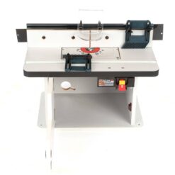 The Bosch Laminated Router Table with Cabinet is compatible with more than just Bosch routers and will immediately expand your woodworking repertoire. Position one of the three included tabletop inserts (1 in., 2 in. or 2-3/4 in. Dia hole) into the router mounting plate to configure the proper setup for your device and intended application. Adjustable MDF face plates on the oversized aluminum fence allow taller pieces to be steadily fed through the cutting platform, while kickback protection and enhanced guidance is afforded via two adjustable feather boards which attach to the fence. 2 integrated dust ports allow you to conveniently hook up 2-1/2 in. vacuum hoses for debris-free operation.