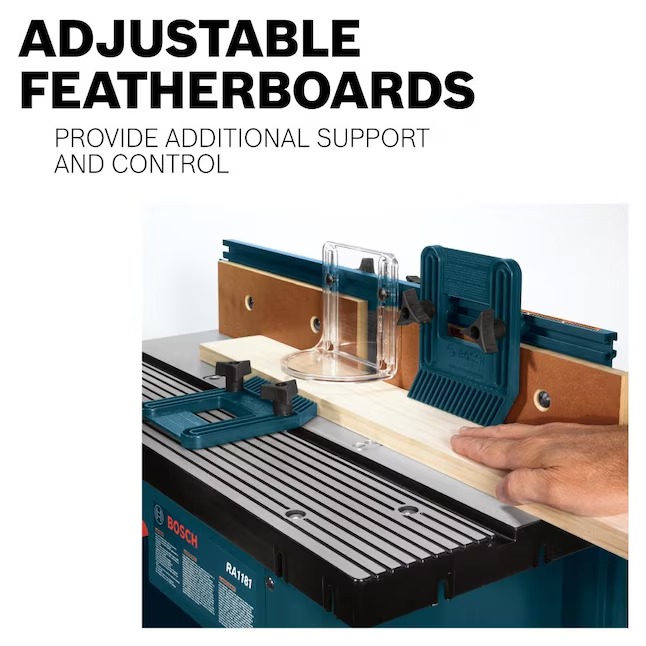 - Easy-to-use adjustable featherboards – attach to fence and table, providing additional guidance and kickback protection