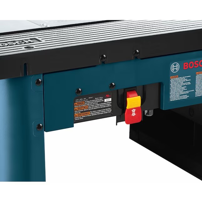 The Bosch RA1181 benchtop router table provides a large work surface for precision and versatility. The large aluminum top makes the table both durable and portable. Designed to fit a variety of routers, this router table is a versatile piece of equipment that will serve as an indispensable part of any woodworking shop. Its rigid aluminum router mounting plate is pre-drilled for compatibility with a variety of routers and for above table height adjustment with many common routers. Its 2-1/2 In. dust-collection port offers better dust collection for a cleaner work environment. This benchtop router table includes mounting hardware, features a tall aluminum fence with adjustable MDF faceplates, two outfeed shims, and an aluminum router mounting plate. The starter pin and guard for routing curved workpieces is also included, in addition to the built-in cord wrap for convenient storage and portability.