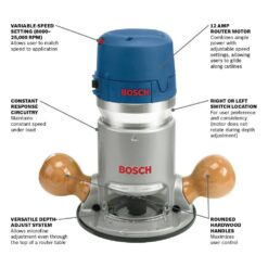 The Bosch RA1181 Benchtop Router Table was designed to fit a variety of routers and able to be mounted on any workbench. This router table is a versatile piece that serves as an indispensable part of any woodworking shop. Its 2-1/2 in. dust collection port offers better dust collection for a healthier work environment. The port fits standard 2-1/2 in. vacuum hoses. Includes bonus 1617EVS Router. Make exacting cuts every time with the Bosch 1617EVS 2.25 HP Electronic Variable Speed Fixed-Base Router. 1 of the quietest routers in its class, the 12 Amp motor combines ample power with adjustable speed settings to steer through the toughest jobs. Glide along your intended cutline using dovetail fixtures, templates, jigs and other guidance devices. A precision centering system and 3-3/4 in. base opening enable swift maneuverability along your intended path.