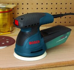The Bosch ROS10 5-In. Single-speed palm random orbit sander/polisher delivers fast removal and a well-blended, ultra-smooth finish, so woodworkers and finish carpenters can sand quickly and to exacting standards. It is designed to eliminate swirl marks on the workpiece, thanks to an integral pad dampening braking system. Bosch’s hook-and-loop disc attachment ensure firm grip of the disc during use. Additionally, the microcellular backing pad is pliable to ensure a smooth, fine finish on both flat and contoured surfaces alike. With a comfortable soft-grip top and body design, this 2.5 Amp sander delivers 12,000 OPM for first-class stock removal. It also includes an on-board system for filtering fine dust.