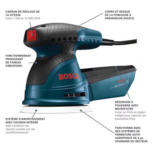 Bosch ROS20VSC 120 Volts 2.5-Amp Variable Random Orbital Corded Sander with Dust Management