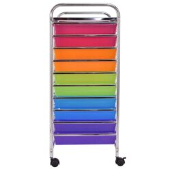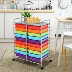 This colorful double-line rolling cart with 20 easy-access and removable drawers 20-drawer is perfect for home, classroom or art studio use. The rolling cart is great for paper, tools, accessories, crafting, scrap booking or home office, help you to organize and make your tools in order. Constructed of industrial-strength metal tubes and finished in chrome, the cart is sturdy to serve you for a long time. Equipped with easy-to-grab handles and 4 universal wheels, it is easy to move the lightweight cart. And 2 of the wheels have simple lock for stopping easily. With our practical cart, you can store various things from art and office supplies to cleaning or kitchen essential.