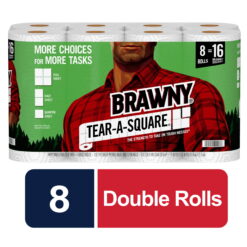 Like all other Brawny products, Tear-A-Square 2-ply premium white paper towels are strong, absorbent and durable. Use Brawny Tear-A-Square quarter sheet size paper towels for small spills and quick clean-ups, to place snacks, as a napkin or a coaster. Brawny Tear-A-Square paper towels – the strength of Brawny for messes big, small and anywhere in between.