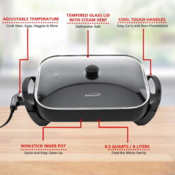 Brentwood 16″ Electric Skillet with Glass Lid – Non-Stick, Adjustable Temperature, Black