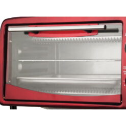 The powerful 800w Brentwood TS-345R stainless steel 4 Slice toaster oven can toast, broil and bake an array of foods. Adjustable temperature ranges 50 to 450 degrees. Choose between the 15-minute timer with auto shut off and stay on functions. Two rack positions and two heating elements insure even toasting. Convenient crumb tray. Includes food tray and wire rack.