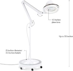 Big, Bright Magnifying Light to See Small Details Easily – This magnifier lamp was designed to ease your close up focus, even with vision problems such as aging eyes or macular degeneration. This dimmer lamp boasts the largest authentic diopter glass magnifier lens available, 4.5″ wide, with a 15 inch+ focal range. The 5 diopter glass will magnify whatever you are working on up to 225%. It won’t get hot so you can enjoy your hobbies comfortably.
