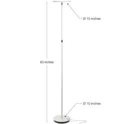 - Standing at 63-in tall and weighing 7 LBs, the sky LED features a top light that’s 10-in diameter and a weighted base 10-in diameter that prevents accidental tipping