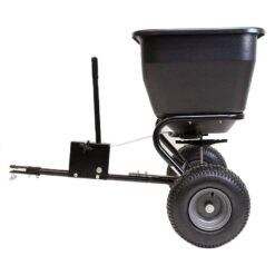 Need to spread larger yards? Brinly’s BS-36BH tow-behind broadcast spreader features a 3.5 cu. ft. hopper, ideal for homeowners and light commercial applications of 1 acre and larger. The universal hitch fits most lawn tractors so you don’t have to do the heavy work. Use it year-round to easily apply seed, fertilizer, and other lawn chemicals. In winter, use your broadcast spreader to apply salt, sand, & other snow and ice melt agents. So no matter the season – spring, summer, fall or winter – This Spreader has you and your property covered.The Brinly spreader is built of durable, rust-proof polyethylene so it stands up to even the most highly corrosive fertilizers for years of use. A fully enclosed gearbox and stainless steel interior hardware inhibit rust and corrosion, ensuring season after season of durability. The spreader’s glass-filled nylon gears feature a high-speed 6:1 ratio providing the widest spread patterns available.Along with the BS-26BH broadcast spreader, the BS-36BH pull-behind spreader features a Patented Directional Spread Pattern Control, compensating for various granular weights (seed vs. fertilizer, etc.). It centers the distribution pattern, guaranteeing a balanced application. The spreader’s calibration controls are always within reach and feature a locking dial for secure rate gate settings. Brinly’s Autoflow is a unique feature that automatically stops material from flowing when you stop your lawn tractor, eliminating waste and grass burn.