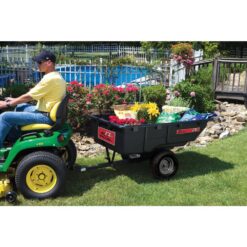 Brinly Hardy’s heavy duty 850 lb. capacity, 17 cu. ft. utility cart is ideal for larger outdoor projects. Perfect for attaching to riding lawn mowers and lawn tractors, Brinly carts carry tools, plants, soil and stone pavers saving time and your back. Brinly carts feature durable galvanized steel frames and heavy duty compression molded polyethylene beds that won’t rust or dent. Unique molded-in features such as bed channels and stake slots allow for the addition of dividers and extensions. A steep 45° tailgate angle and steel release handle mechanism make emptying a breeze.