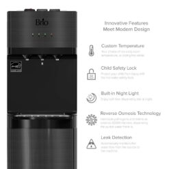 Revitalize with clean water from the Brio 500 series bottle-less water cooler. Refueling with fresh, clarified water has never been easier; simply connect your cooler to a water line in your home and begin drinking fresh, crisp water. Dispensing water has never been more convenient and easy. Four powerful filters eradicate harmful contaminants most commonly found in tap water to bring you clean drinking water. The illuminated display panel allows you to control the self-cleaning feature, a clock, nightlight and child lock to ensure everyone’s safety while utilizing the Brio cooler. Trust in a water system that leads in innovation and health.