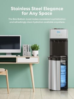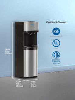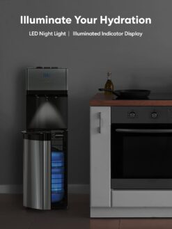 - CONVENIENT BOTTOM LOAD: Stop struggling to pick up heavy water bottles and simplify your life with the easy bottom load water cooler. Save your back from strains and invest in the cooler that allows for easy bottle replacements, as the bottom load cabinet conveniently keeps your bottle safely tucked away.