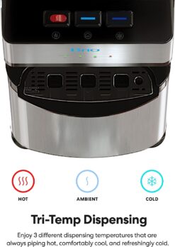 - HOT, COLD & ROOM TEMPERATURE: When you use our water cooler dispenser you can choose between crisp cold, room-temperature and piping hot output, making it ideal for cool refreshments or toasty beverages.