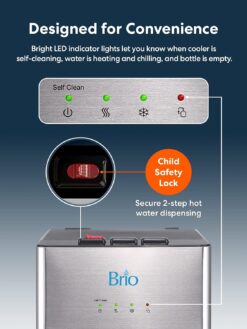 - CHILD-SAFETY LOCK: Never worry about accidental pouring of hot water again with the two-step dispensing on the hot-water spout. Simply release the lock located above the dispensing button and enjoy soothing hot water at your fingertips. Rest assured that the safety of you and your loved ones are in the hands of Brio Water Engineers.