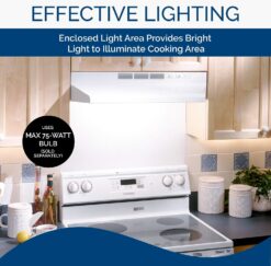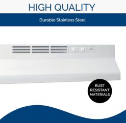 - WHITE UNDER-CABINET DUCTLESS RANGE HOOD: 2 fan speeds allow you to adjust the blowing speed to fit your needs while separate rocker switches control fans and light for easy use