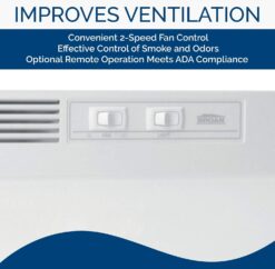 Upgrade your kitchen with the Broan Non-Ducted Under Cabinet Range Hood with Light and Easy Install System. The non-vented hood is designed for use without air ducts and provides effective filtration, high quality and value. The hood features the EZ1 one person installation system with a two-bracket system that holds the hood for you while you make final electrical and ducting preparations. The 2 fan speeds allow you to adjust the blowing speed to fit your needs, while a removable combination grease-charcoal filter allows for cleaner indoor exhaust recirculation and is replaceable for easy maintenance. The motor is permanently lubricated and designed for years of trouble free service. A protective lamp lens uses up to a 75-Watt in incandescent light distributes light evenly over the cook-top with separate rocker control switches that control fan speed and light activation. Mitered sides and a hemmed bottom join forces to help ensure safety and provide a decor-complementary look. This range hood is backed by a 1 year limited warranty. Broan leads the industry with forward-thinking residential ventilation products, customized climate, communications and home automation solutions along with award winning customer service. Broan’s inspiring heritage provides the foundation for its three global brands – Broan, NuTone and BEST.
