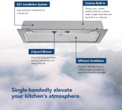 - BUILT-IN POWER PACK INSERT: This insert provides efficient ventilation for your kitchen, quickly removing smoke & odors from your space with a two-speed blower at 300 Max Blower CFM.