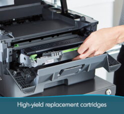 - The 250-sheet paper capacity helps improve efficiency with less refills and handles letter- and legal-sized paper.